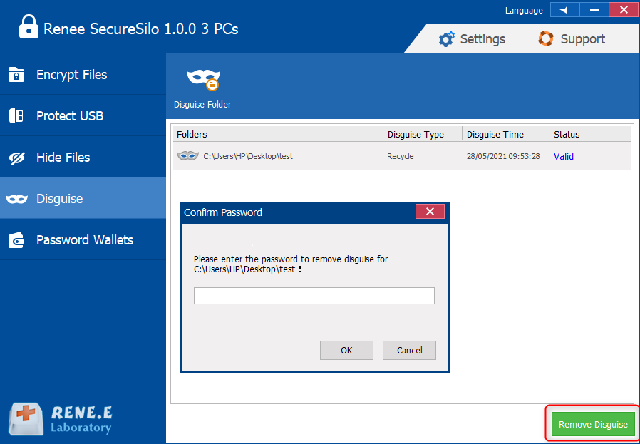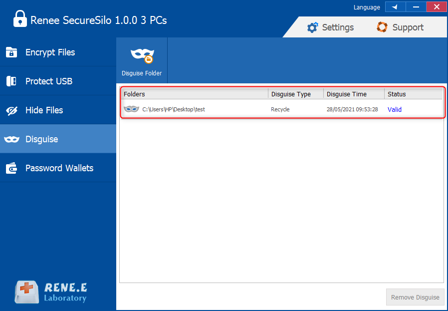 From the above contents, we’ve shown that encryption is not the only way of data protection. You can disguise the folders with Renee SecureSilo.