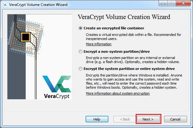 2. Select [Create an encrypted file container].