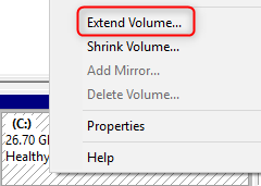 Step 2: After entering Disk Management, right-click the disk partition where the game is installed. Select Extend Volume and click Next on the Welcome to Extend Volume Wizard page.