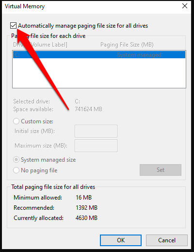 Step 4: First uncheck the box Automatically manage paging file size for all drives. Then select Custom Size, you can enter the increased value (in MB) in the Initial Size and Maximum size fields. You can set the initial size to 400MB, and the maximum value to 3000-4000MB (about 2.5GB or 2560MB for general games is enough, if some games need more virtual memory, you can adjust the value according to the actual situation), then click OK. After setting, please restart the computer, try to install the game again, and observe whether the problem is resolved.