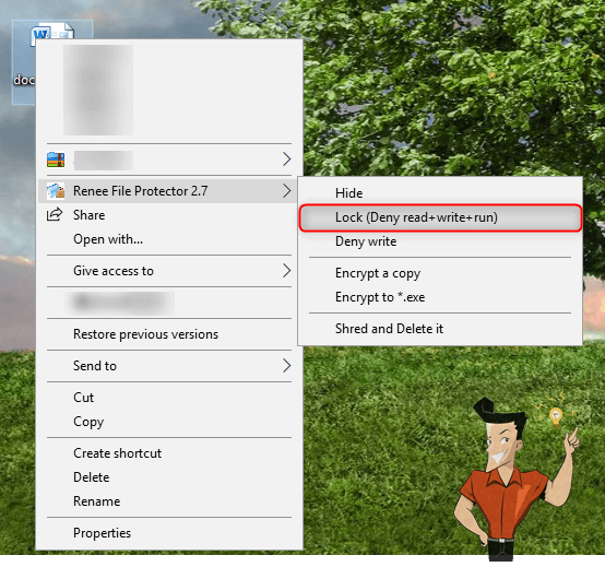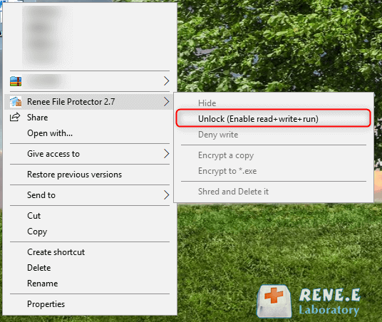 a. After installing Renee File Protector, right click at the target file and select [Renee File Protector] – [Lock].