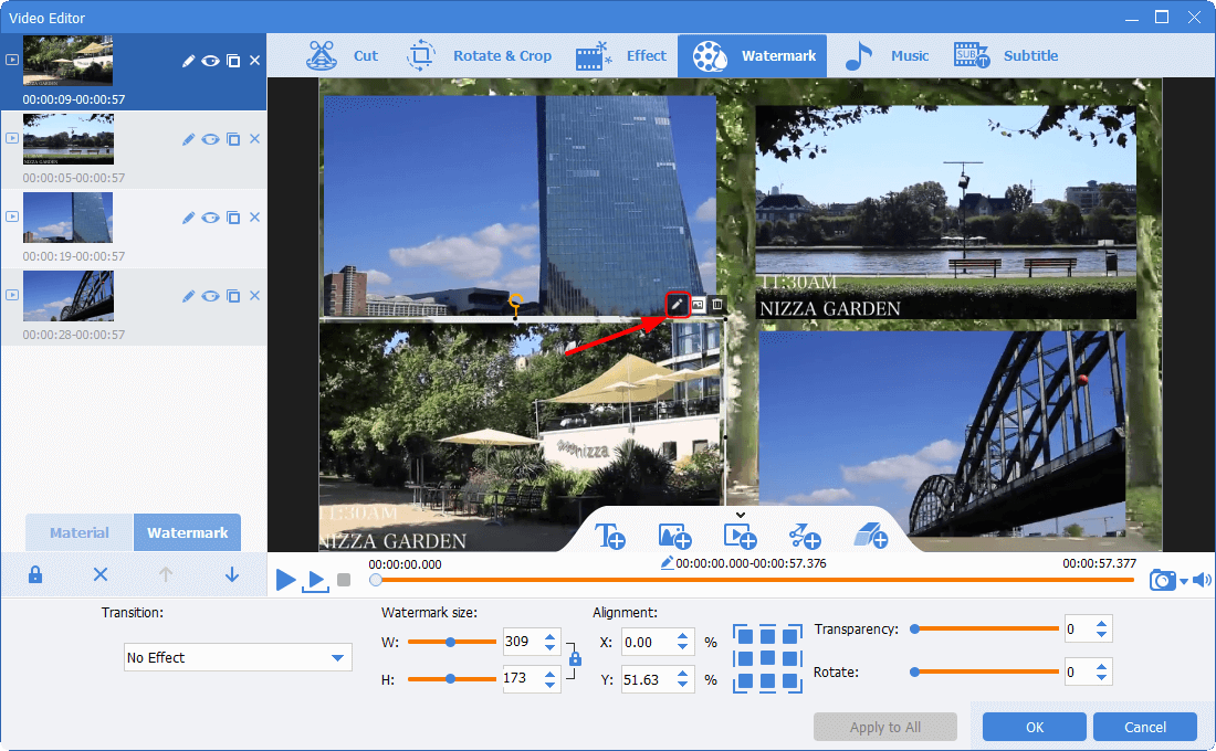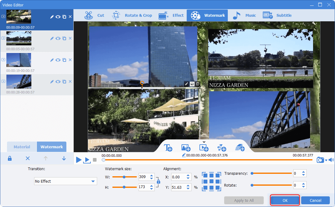 After merging video files, you can also add watermark, remove watermark, add starting and ending, effects, subtitles, etc to the video. Please refer to “How to edit videos” for detailed steps.