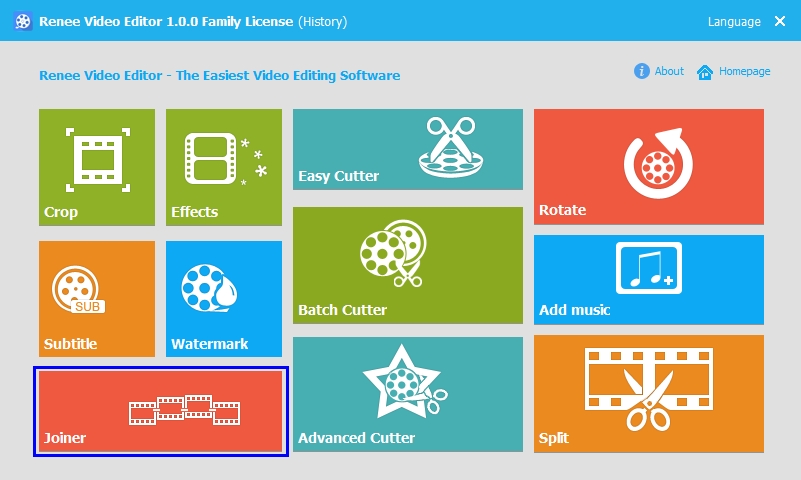 Step 1: Launch Renee Video Editor. Click “Joiner”.