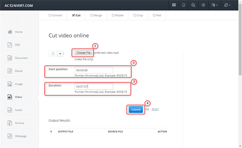 Method 3: Cut MP4 Video Online with Aconvert (Can not Protect Personal Data Security)