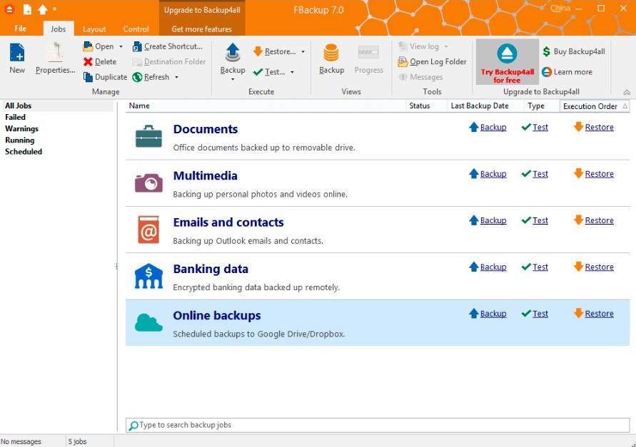Fullfill different backup needs Supports system backup, disk / partition backup, file backup and disk clone.