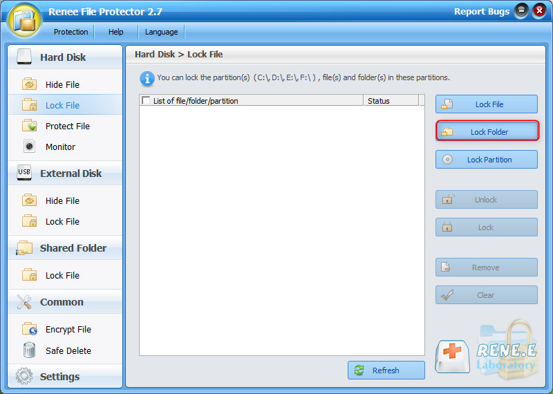 Overall protection Users can hide, lock or get other protection to files in local disk or USB disk.