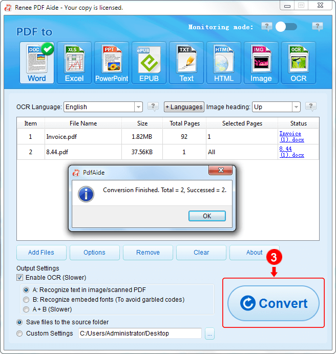 Renee PDF Aide is a brilliant software which can help me convert batch PDF files in minutes. Besides, built-in OCR function is also helpful for me to recognize scanned PDF files. It is worth to try this software.