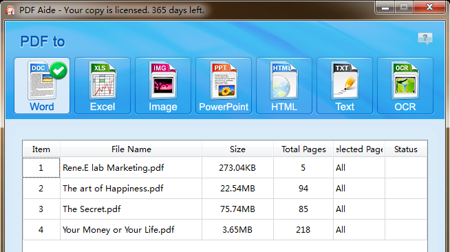 After installing Renee PDF aide on computer, click the Add Files button to upload the files you’re going to convert. You can upload an array of PDF files at a time.