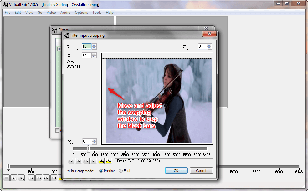 Step 5: Crop the black bars from video by moving and adjusting the crop window. Then click “OK”.