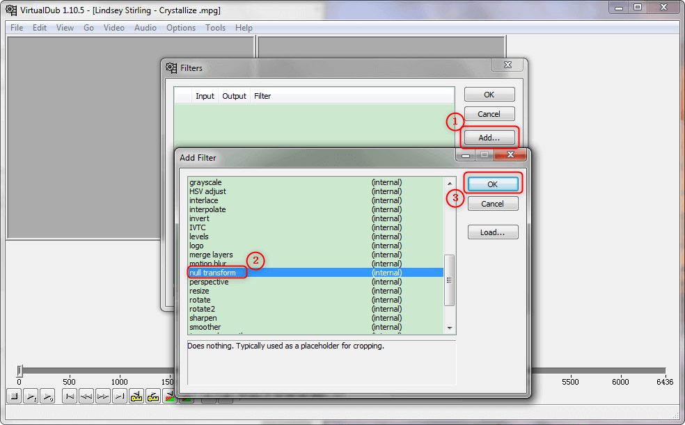 Step 3: Click “Add” and select “null transform” in the “Add Filter” menu.