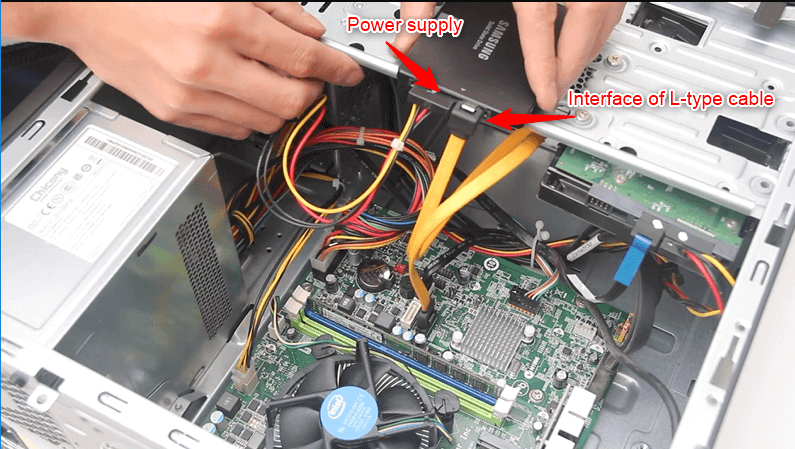 ③ Connect one end of the SATA cable to a spare SATA port on the motherboard (The SATA 6Gbps port is blue.). And connect the SATA power to SSD.