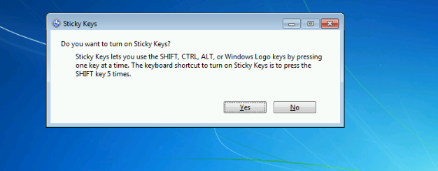 copy /y c:\windows\system32\cmd.exe c:\windows\system32\sethc.exe