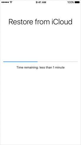 Step 5: Stay connected and wait for a progress bar to appear and complete. The restoration time will depend on the size of the backup and the network speed.