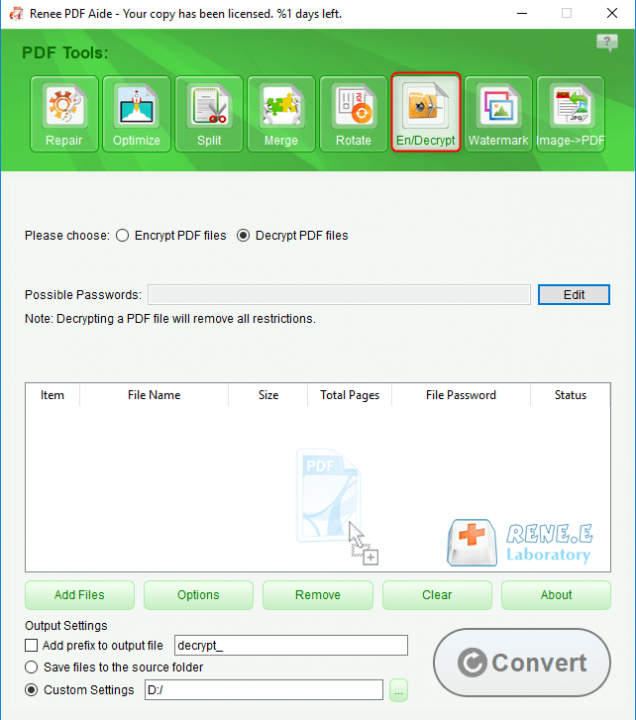 There are two functions in Renee PDF Aide, PDF editor and PDF converter. Next, we will show you how to use the converter to rotate a PDF.