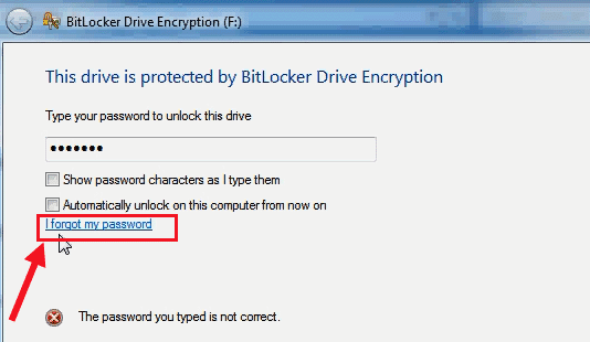 2. If you have forgotten your BitLocker password, don’t panic. Click the “I forgot my password” link that appears below the password box. You will be prompted to choose the recovery key as the unlocking method. The recovery key is a file or USB drive that was previously saved and holds the necessary information to unlock the hard drive.