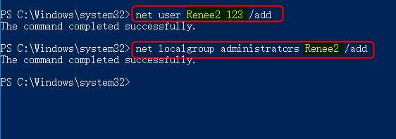 The created administrator account named “Reneelab” with administrator rights, and its default password is “123456789”. You are able to change the password of target account with this new created administrator.