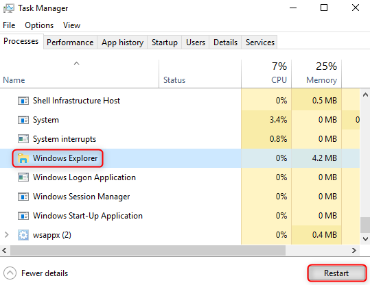 If the taskbar is frozen, you could try restarting the PC or Windows Explorer to fix it. The process explorer.exe takes control of the file explorer, taskbar and start menu, so restarting it can fix the frozen taskbar.