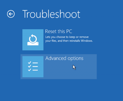 3. Within the Troubleshoot menu, locate and select the Advanced options. This will provide you with further repair options.