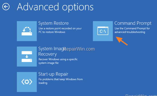 4. From the list of advanced options, select Command Prompt.