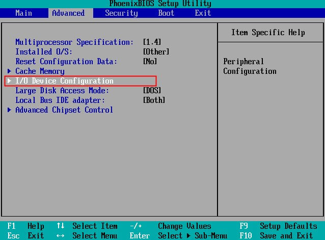 Step 2: Find settings related to USB in Advanced tab in BIOS. Then please try to find items like USB Configuration or Device Configuration.