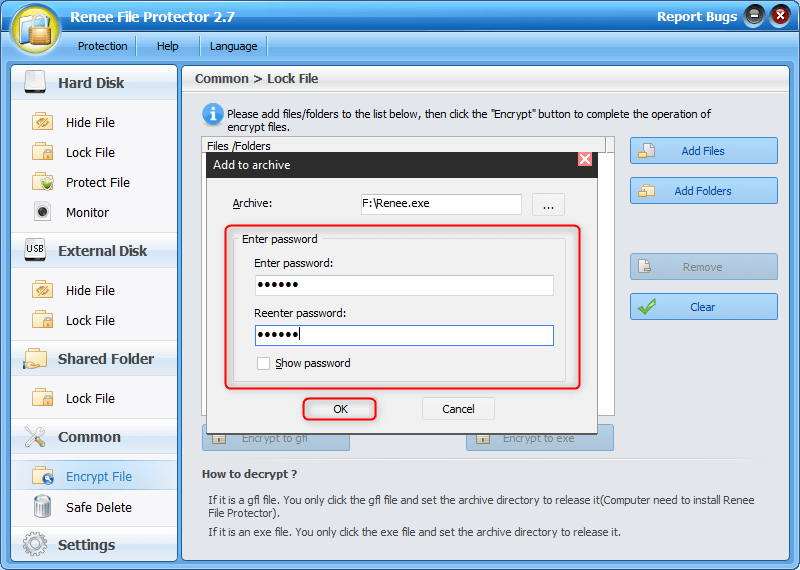Part 3: How to Encrypt USB Flash Drive with Renee File Protector