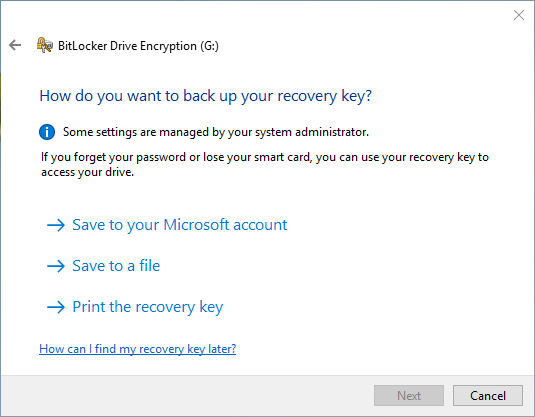 4. Back up the recovery key used to unlock BitLocker if you forget the password.