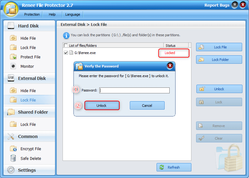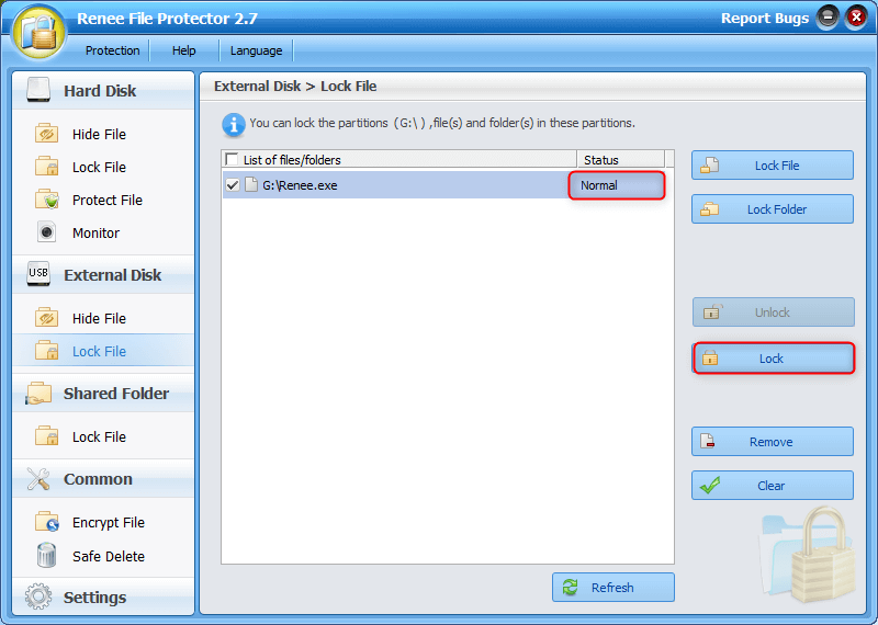 After encrypting the file, we can continue using Renee File Protector to lock. With the double guarantee, the file will be free from privacy leakage.