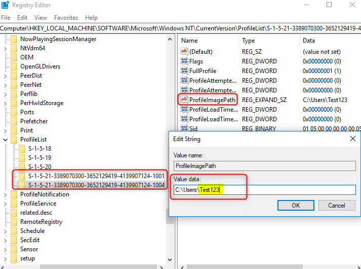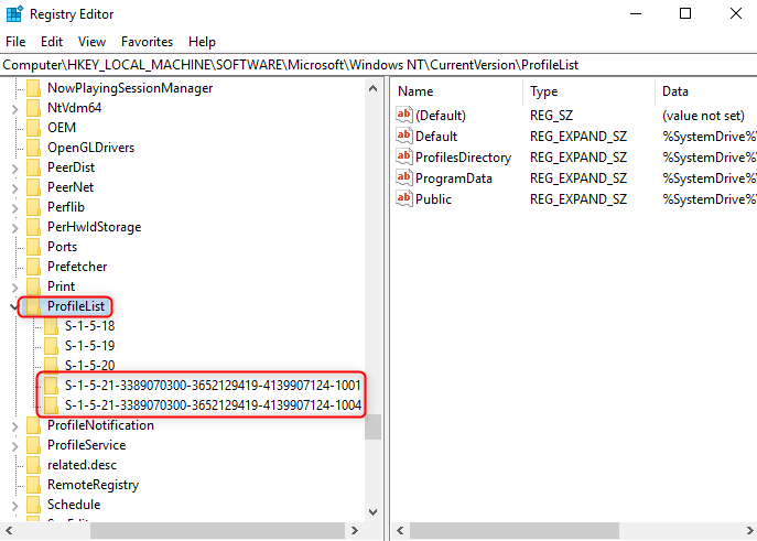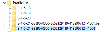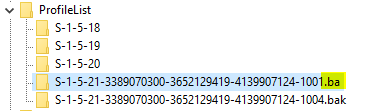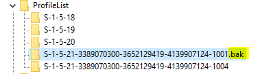 - If you have two folders beginning with S-1-5 followed by long numbers and one of them ends with .bak, please follow the steps as below.