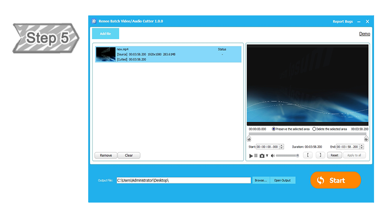 Shot far more frame than you actually need? Want to choose the best part to edit? Renee Video Editor helps you save the part you want without quality lost!