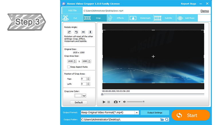 Renee Video EditorSupport editing majority video & audio formats like AVI, MP4, M4A, etc.Modify the output file format in accordance with your device.Be the director of your video!