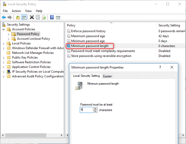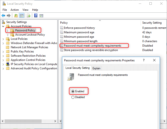 Using password policy can enhance password’s security. It requires users to set password length, password age, password history, etc. Via password policy, you can set a more complicated password that’s hard to be guessed or cracked.