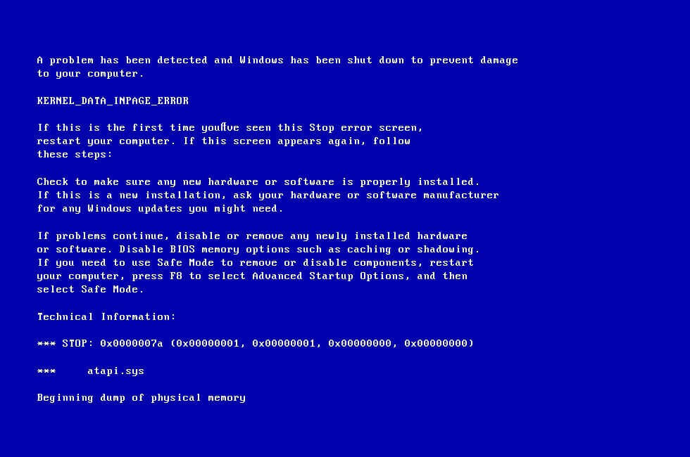 KERNEL DATA INPAGE ERROR is also called error 0x0000007a. In some Windows system, it will be showed as error 0x0000007a.