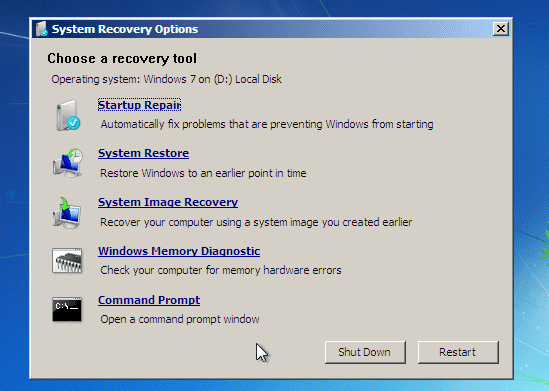 From the system recovery options, select the “Command Prompt“. This will open a black window with a blinking cursor. In this Command Prompt window, type