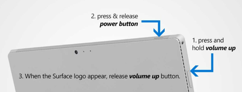 5. Once the Surface logo appears, you can release the Volume Up button.