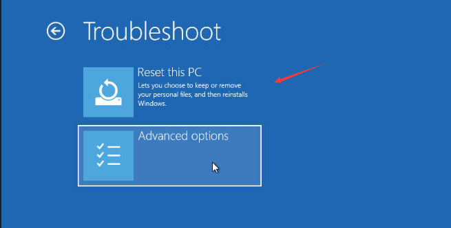 8. From the Troubleshoot menu, choose “Reset this PC” and select “Remove everything.”