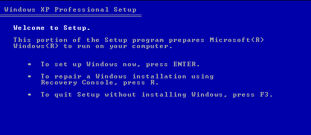 2. As the computer starts up, press any key to boot from the CD when prompted. This will initiate the Windows XP setup process.