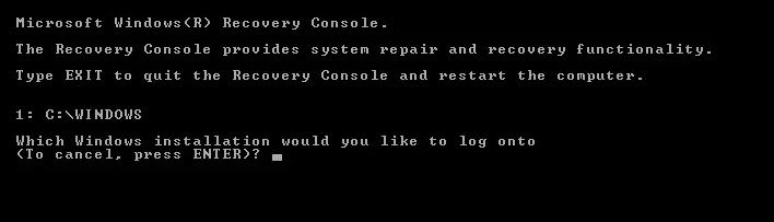 4. Select the appropriate Windows XP installation if prompted, usually by pressing the number key associated with it.